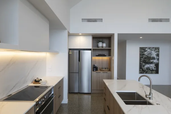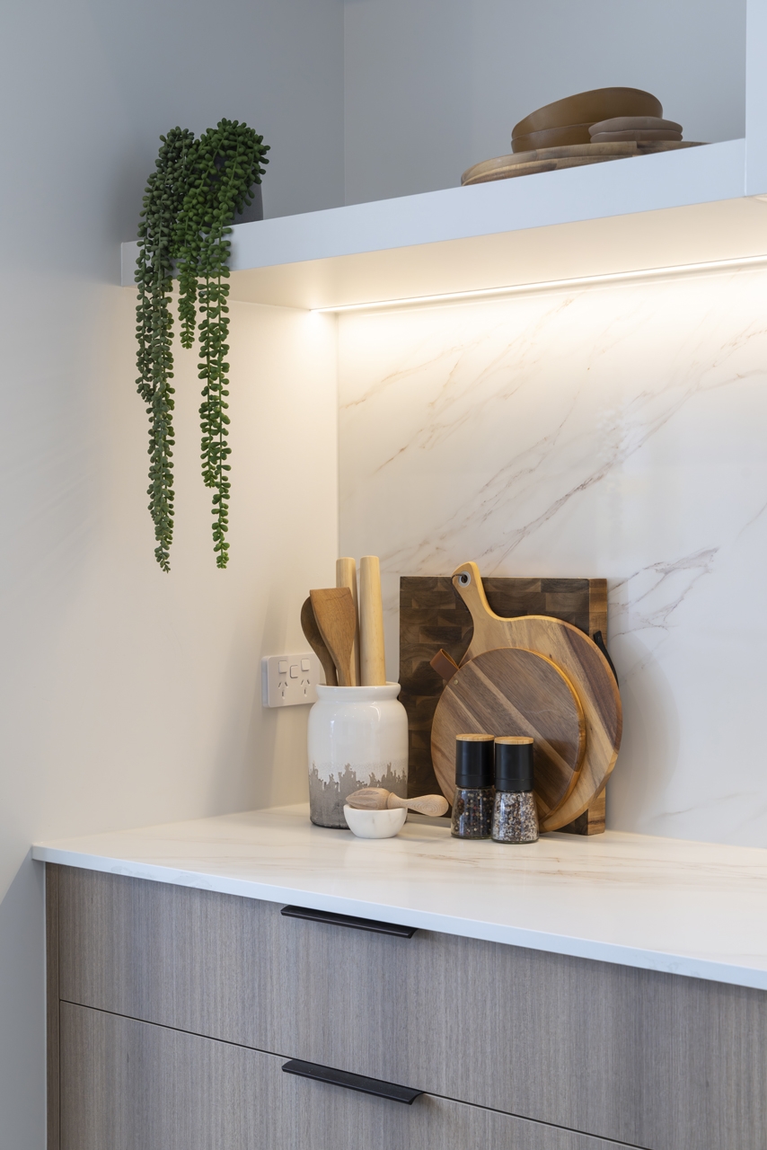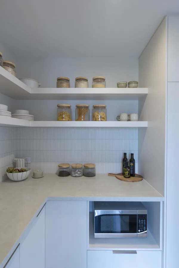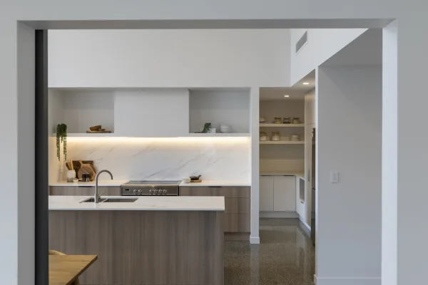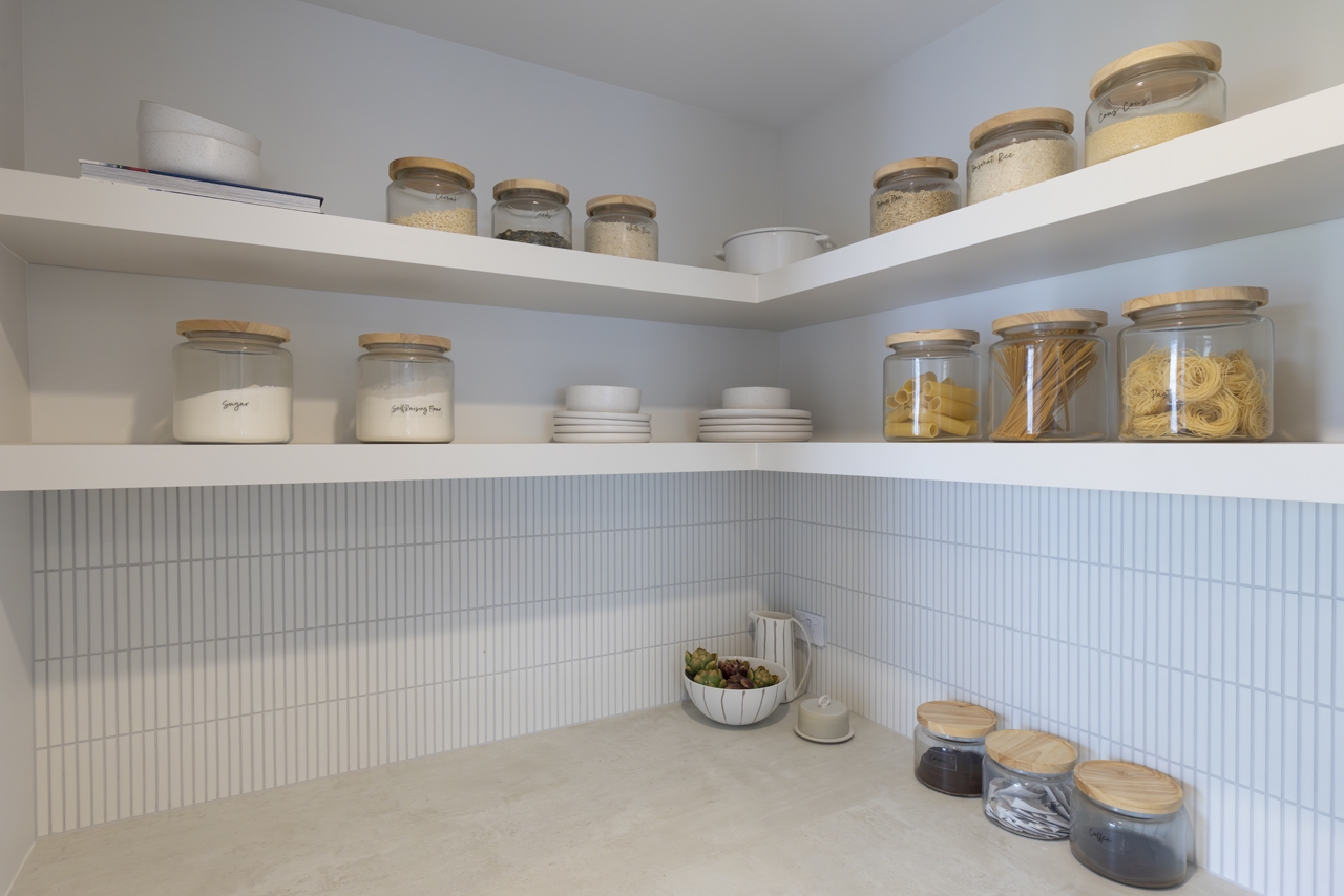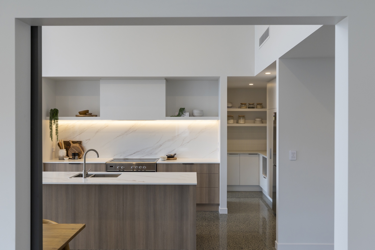 Gourmet kitchen with walk-through pantry leading to the separate laundry