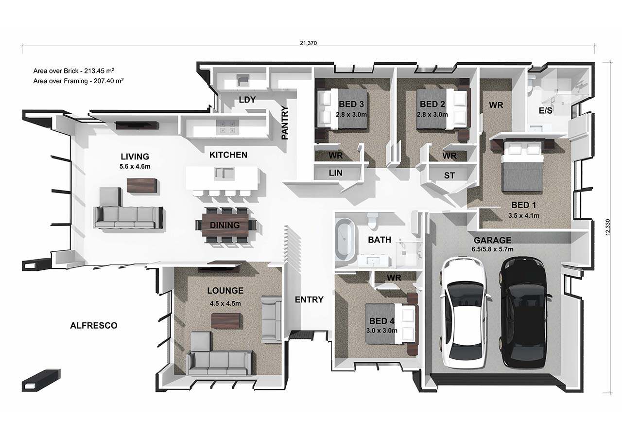 - Architecturally designed light-filled 213m² home + 27m² alfresco
