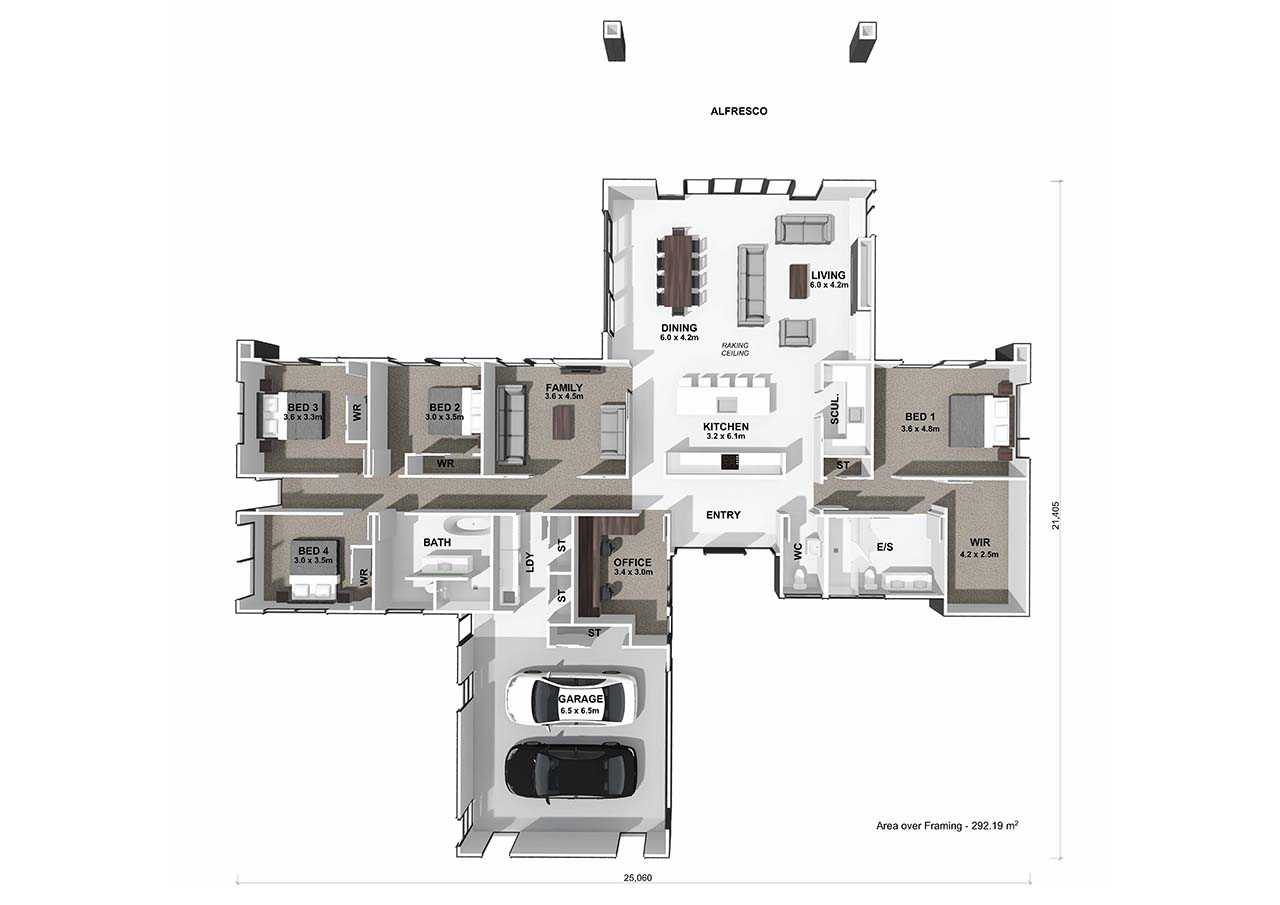The Muriwai plan is a spacious and thoughtfully designed four‑bedroom home, created to make the most of natural light and outdoor living. At the heart of the home is a stunning open‑plan kitchen, dining, and family area that flows effortlessly to a large alfresco space, perfect for entertaining year‑round or enjoying relaxed family time.