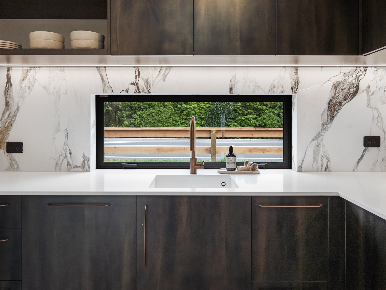 Modern designer kitchen with quality appliances and stone bench