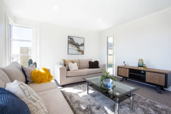 Welcome to Lot 580b, architecturally designed turnkey home offers effortless living with a fixed-price contract and all consents included. Built to meet the new H1 code, it features three bedrooms, including a master with tiled ensuite, and a stylish family bathroom with a back-to-wall bath. The open plan living and dining area flows into a modern designer kitchen with stone benchtops and quality appliances. Enjoy comfort year-round with a heat pump and LED lighting throughout.