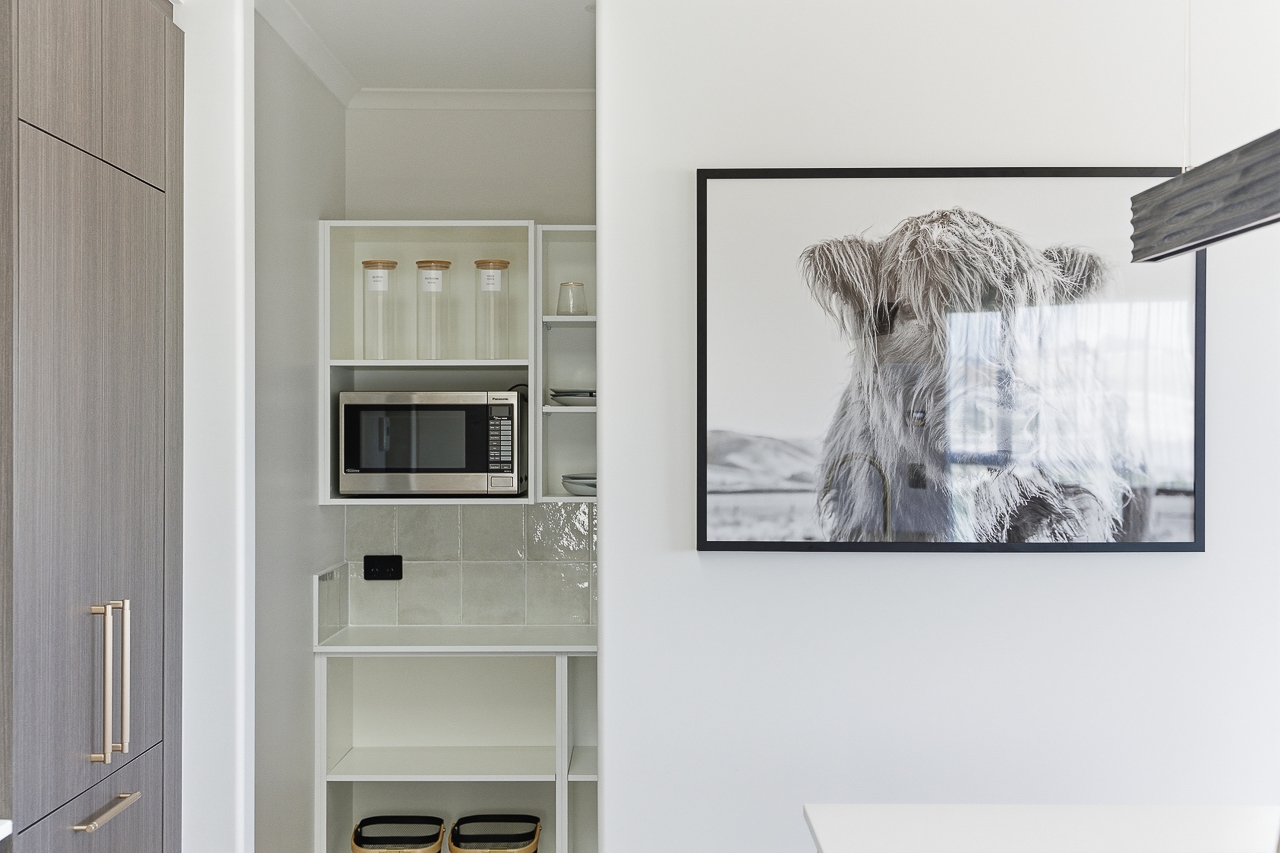 Designer kitchen complete with a large walk-in pantry and modern appliances.