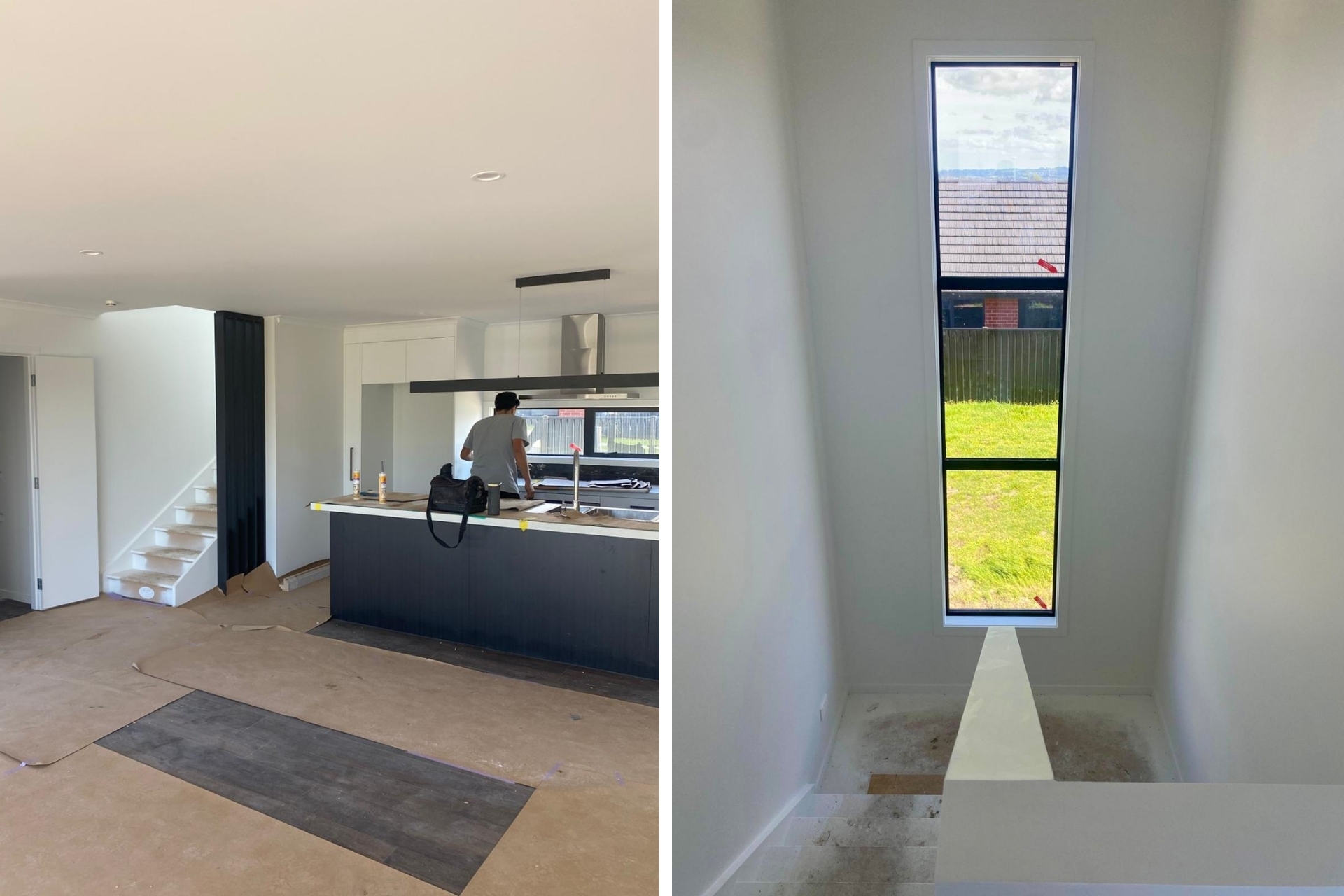 The internal fit-out stage is an exciting stage, with the staircase now fitted, gib on the walls, and doors prepped to be hung, the house is fast transforming from a shell into a lived-in space. Each step adds definition and a sense of space, bringing Flynn & Kiarn closer to their handover later next month.