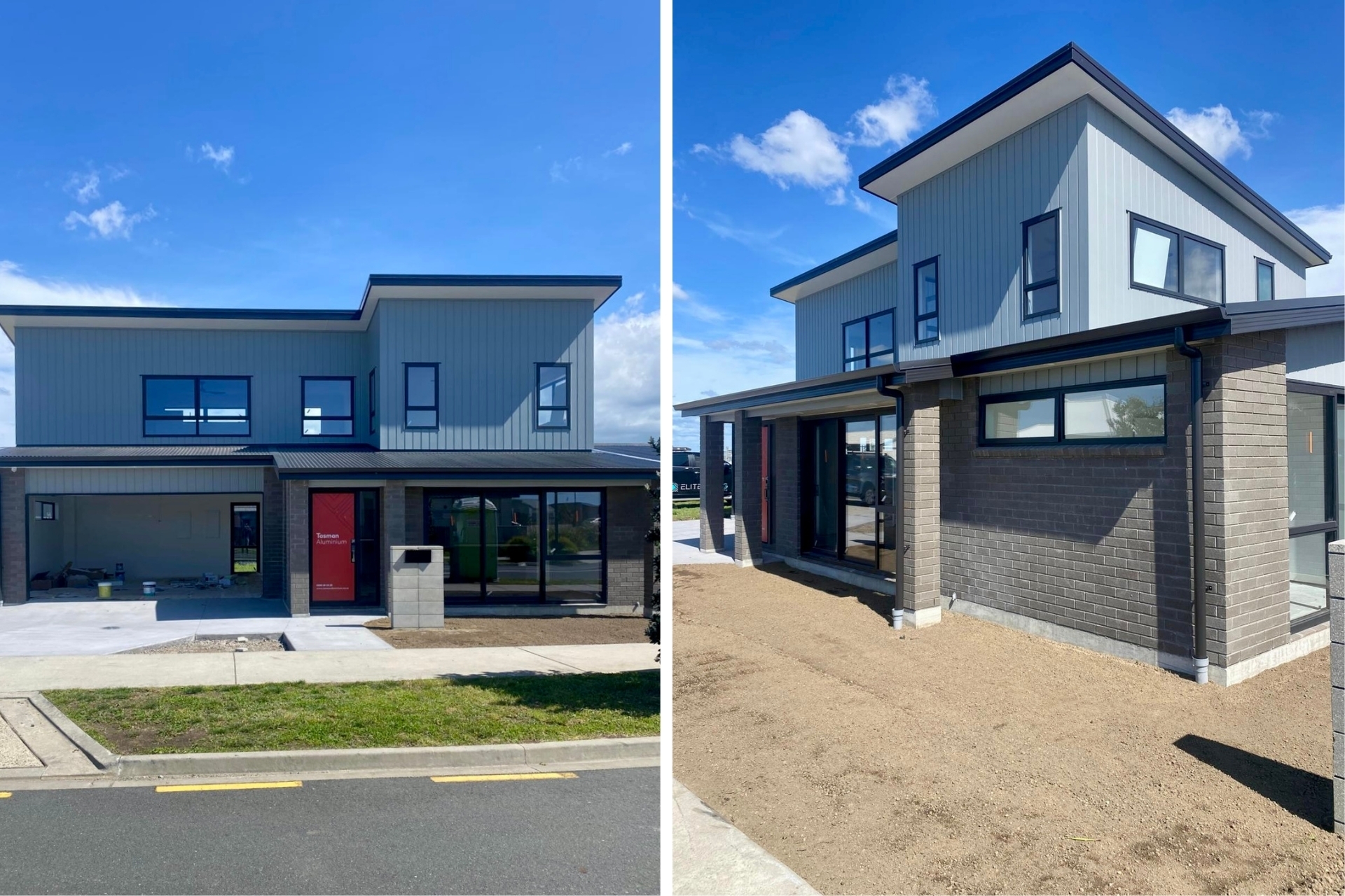 On the exterior, the James Hardie vertical cladding is being painted in Franz Josef, giving the house a smart, modern finish that will stand up to the years ahead.