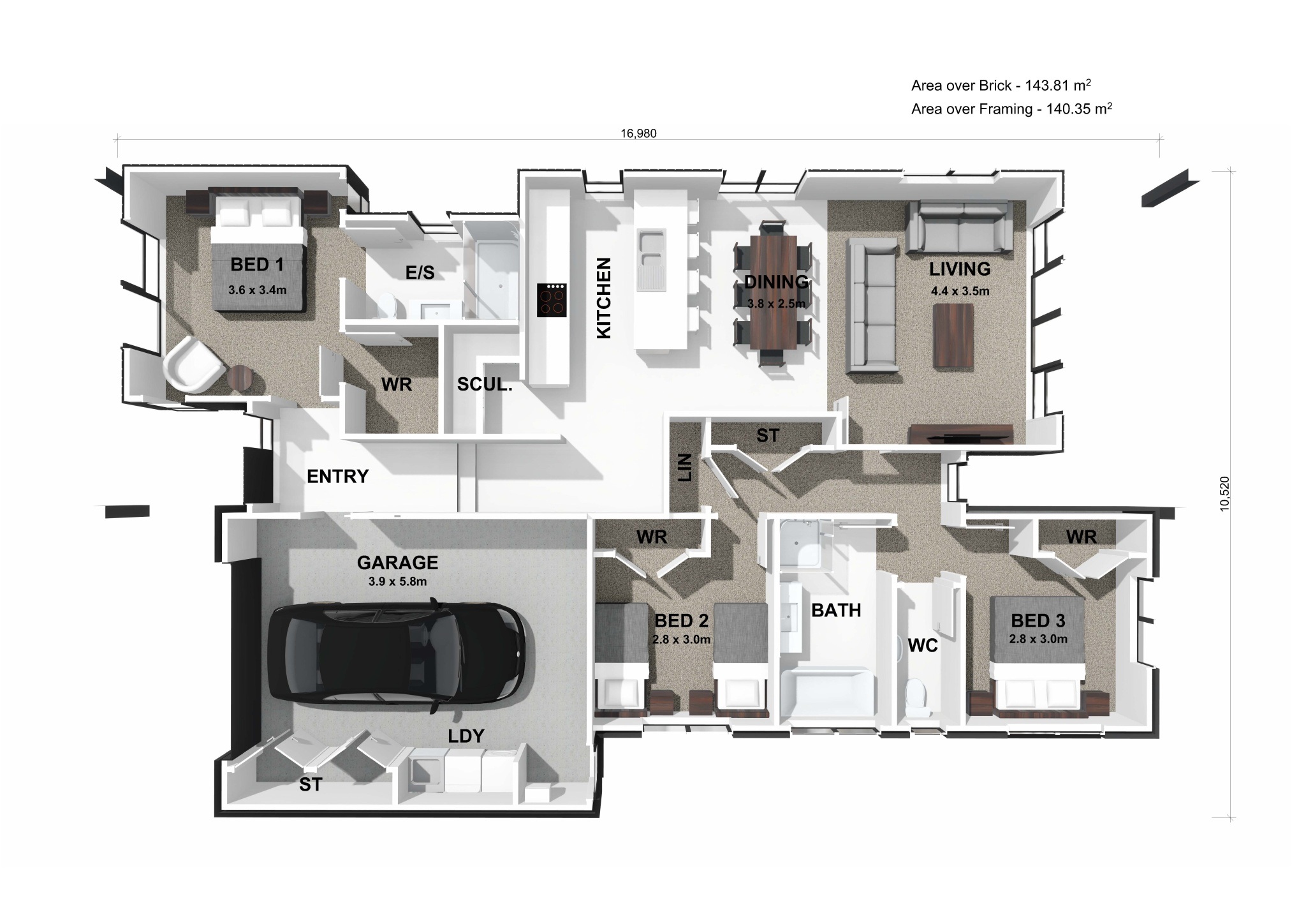The master suite is positioned privately at the front of the home, complete with a walk-in wardrobe and ensuite. The remaining two bedrooms are located in their own peaceful wing, offering an excellent layout for families, teens, guests, or a dedicated home office. A full bathroom with separate toilet, internal-access garage, and dedicated laundry space complete this comfortable, well-balanced design.