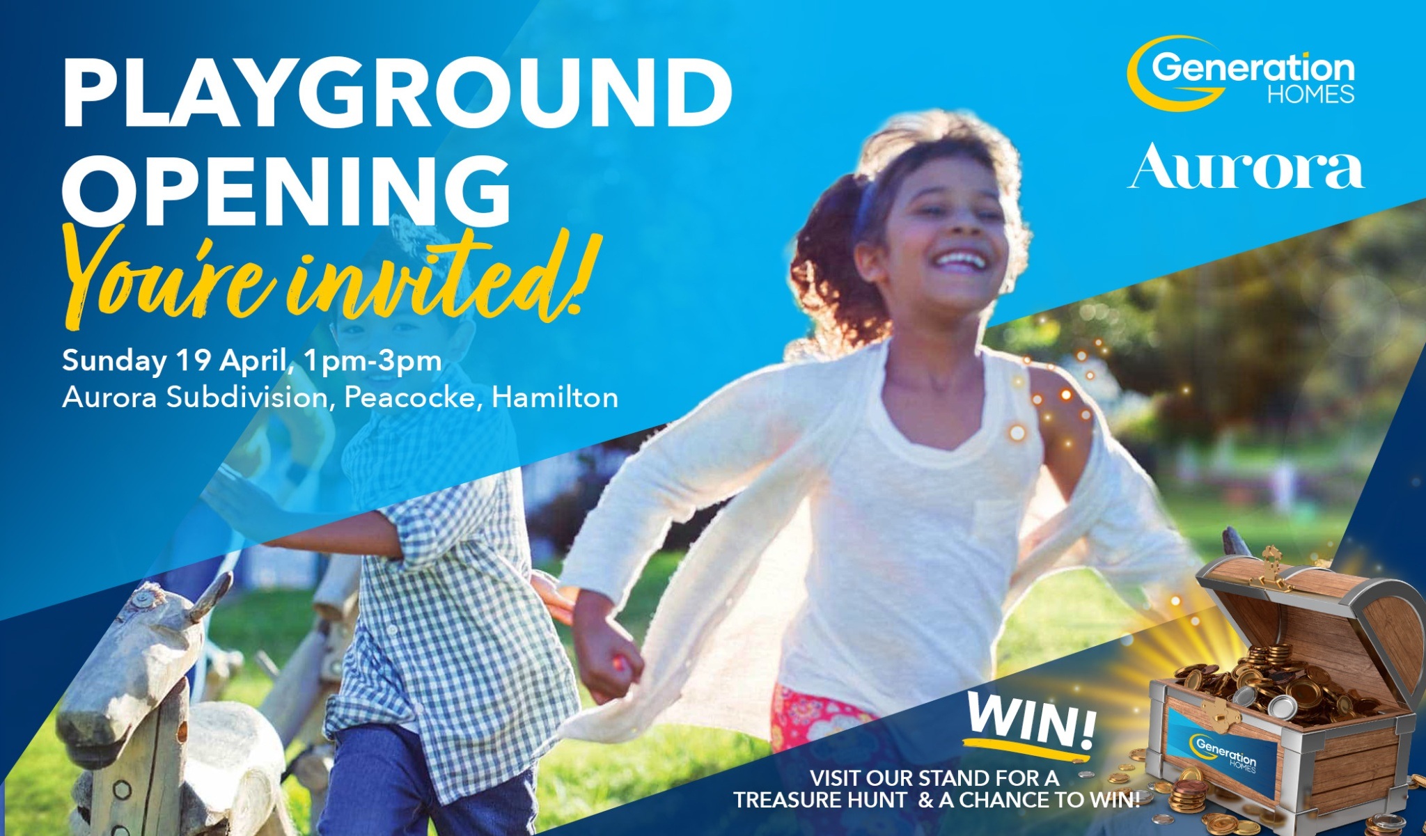 Looking for something fun to do with the family? Come and celebrate the grand opening of the Aurora Playground, Hamilton’s newest play space, located in the heart of the Aurora subdivision in Peacocke.