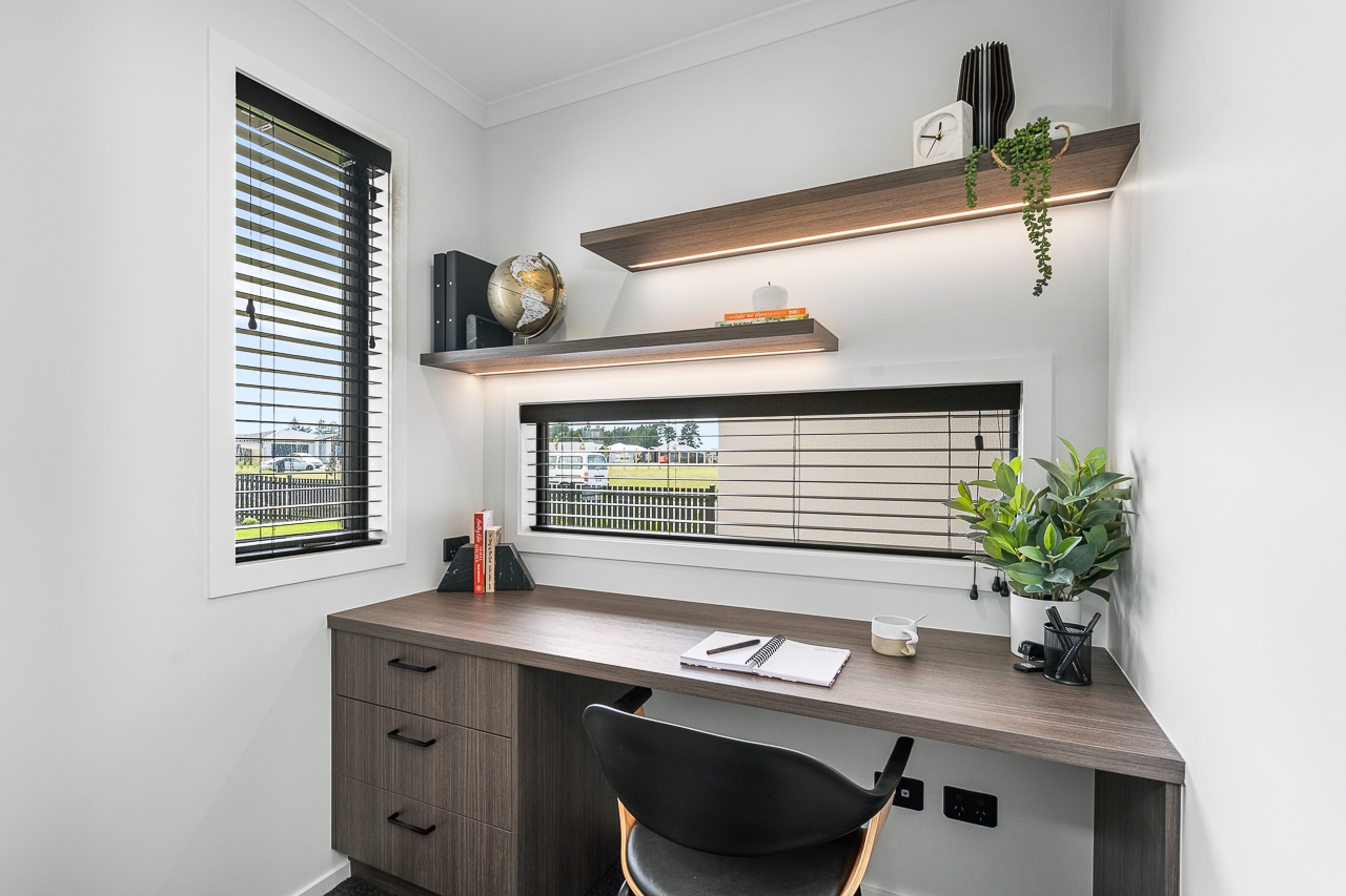The Arbor plan is a thoughtfully designed layout featuring three double bedrooms, including a master suite with a walk‑in wardrobe and ensuite. The open‑plan family, dining, and living areas flow into a designer kitchen with a walk‑in pantry, complemented by a separate study and dedicated laundry. Skylights brighten the main living space, while outdoor entertaining areas extend the home’s appeal.