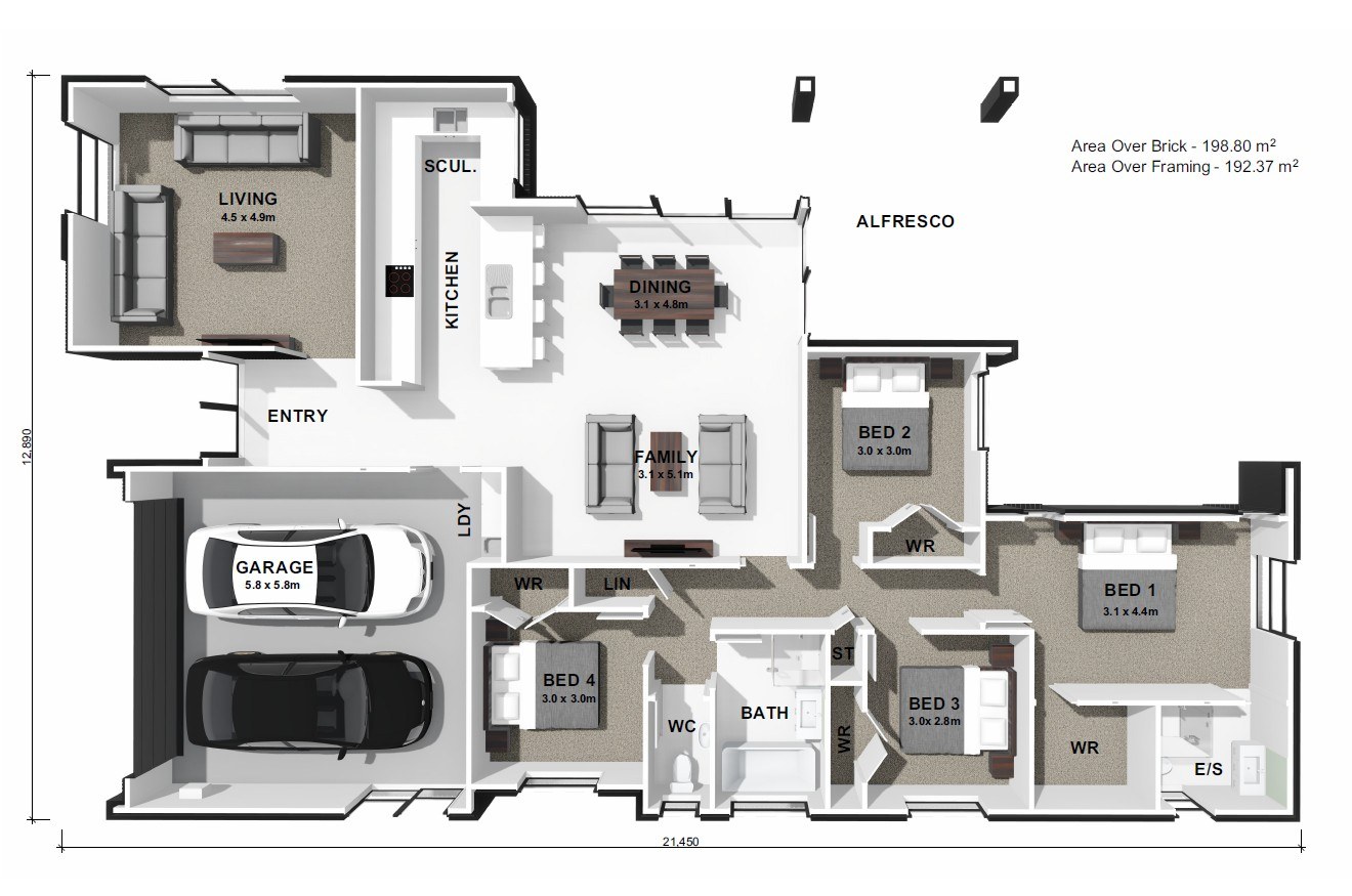 The Fernwood plan is a thoughtfully designed, single‑level home that blends modern style with everyday practicality. Featuring four well‑proportioned bedrooms, including a privately positioned master suite with walk‑in wardrobe and ensuite, the layout offers comfortable family living with clear separation of spaces. The open‑plan kitchen, dining and living area forms the heart of the home, complete with a well‑appointed kitchen and walk‑in scullery, while easy indoor–outdoor flow connects to the alfresco area for relaxed entertaining. A family bathroom with separate toilet, dedicated laundry, ample storage, and a double internal‑access garage complete this compact and functional design.