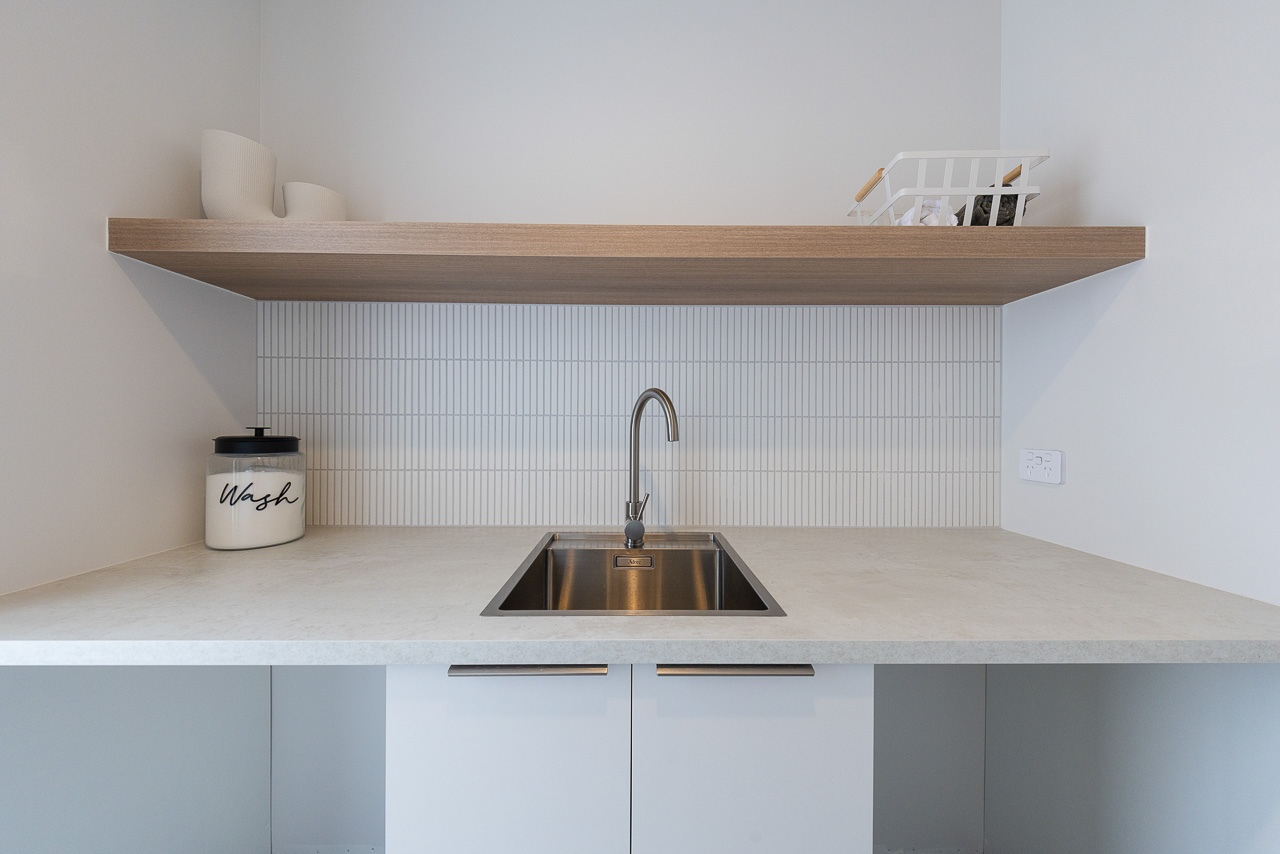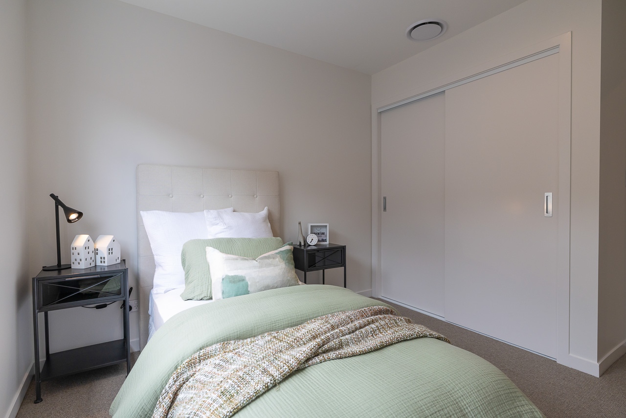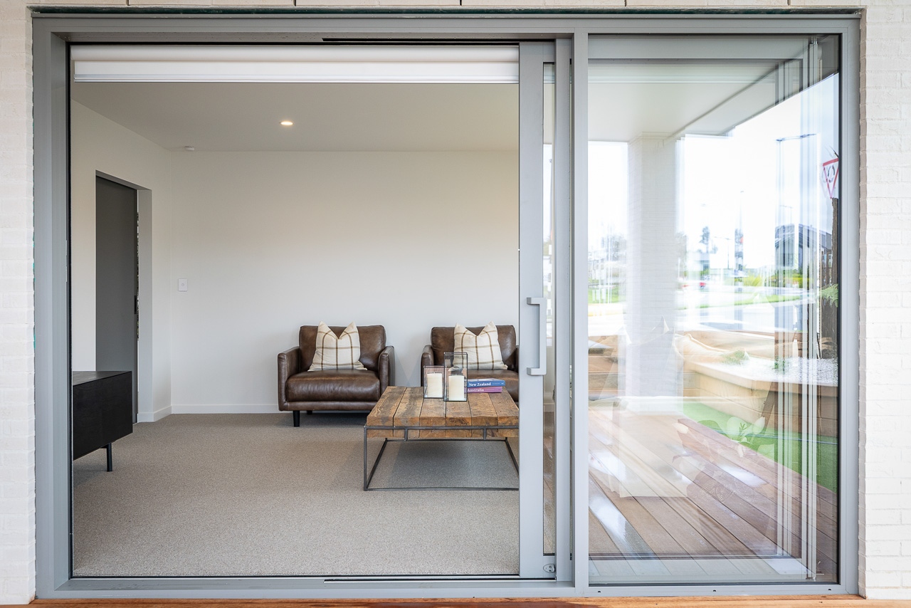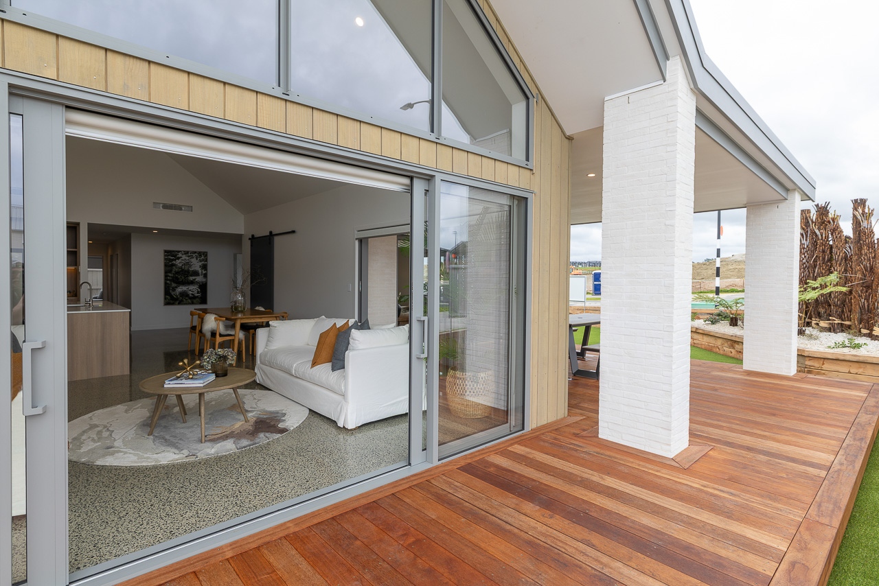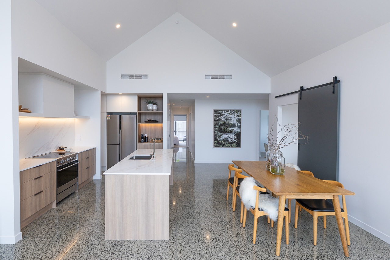 The Ōkura house plan features four spacious double bedrooms, two bathrooms, a separate lounge, and an open-plan living area with cathedral ceilings. At also has a gourmet kitchen with a walk-through pantry connects to a separate laundry.