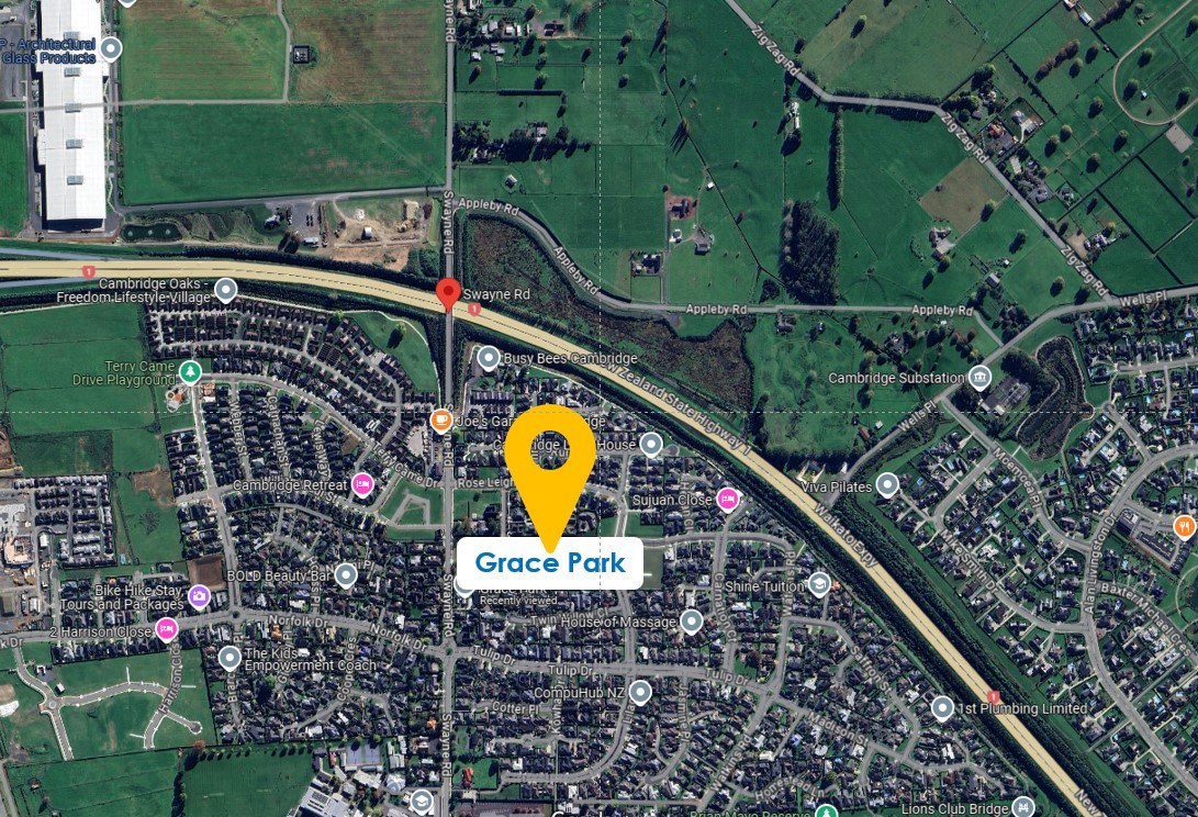 Grace Park is a boutique subdivision in the heart of Cambridge, offering the perfect balance of lifestyle, location and community. With local schools in close proximity, the convenience of living close to town, and the Waikato expressway, this is the perfect location to call home.