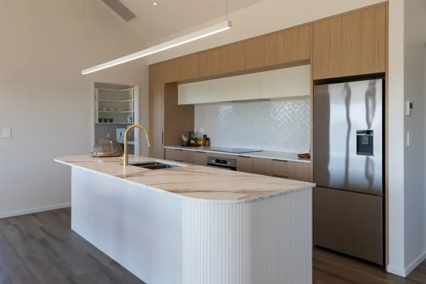 For example, there are curves as features in the home, as curves are in vogue. There is a curved deck, a curved kitchen island and a curved wall in the entrance of the house. I would never pay extra for that in a rental property, but Generation Homes is showcasing what they can do, and they want it to look special, and that’s in our favour.